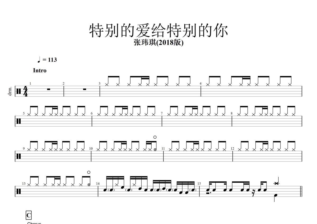 张玮琪《特别的爱给特别的你》鼓谱 - 架子鼓谱