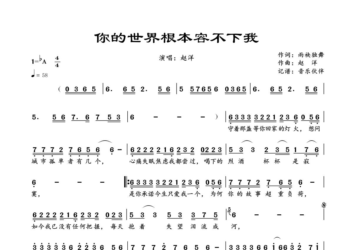 赵洋《你的世界根本容不下我》简谱
