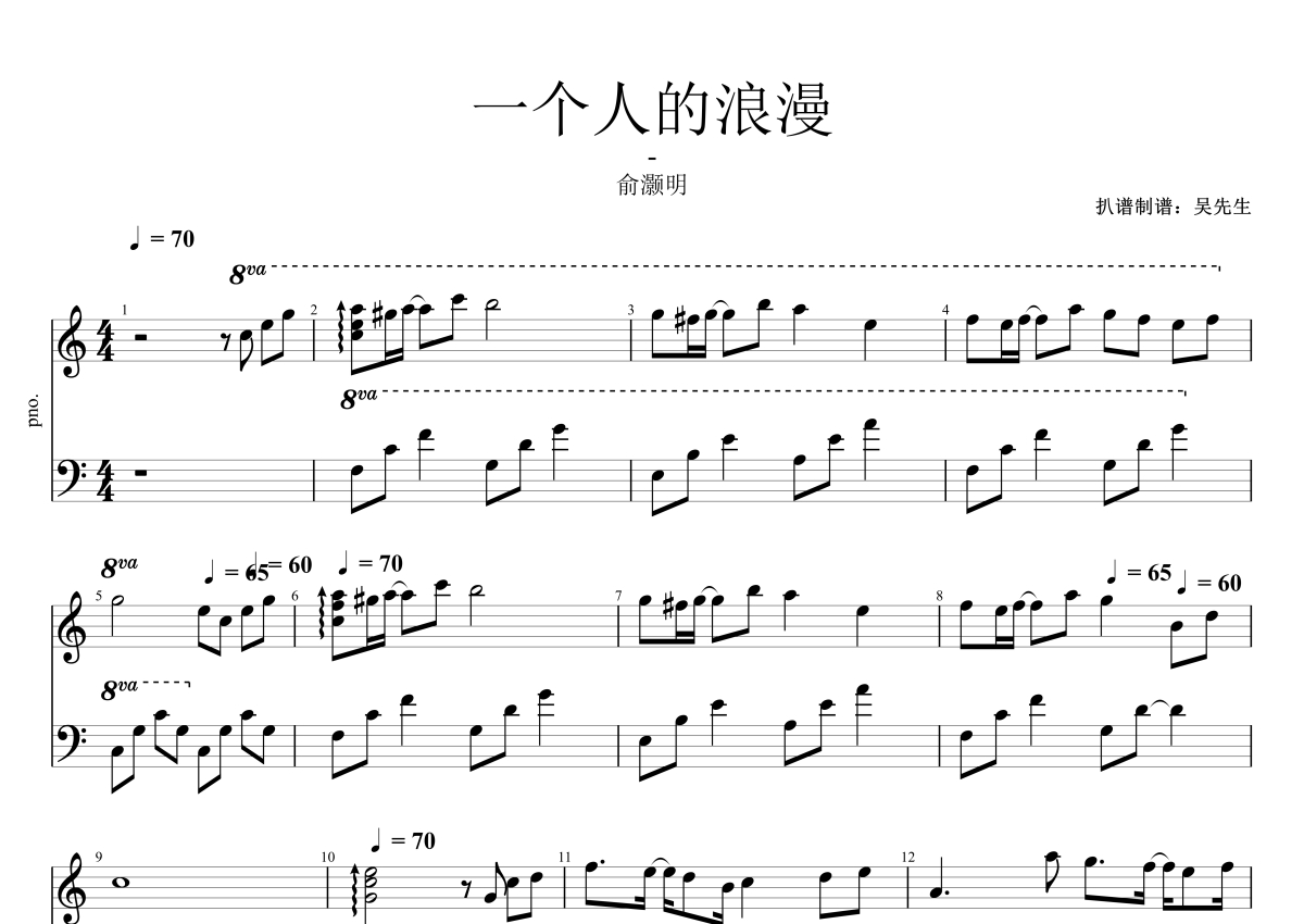 一个人的浪漫钢琴谱 - 俞灏明