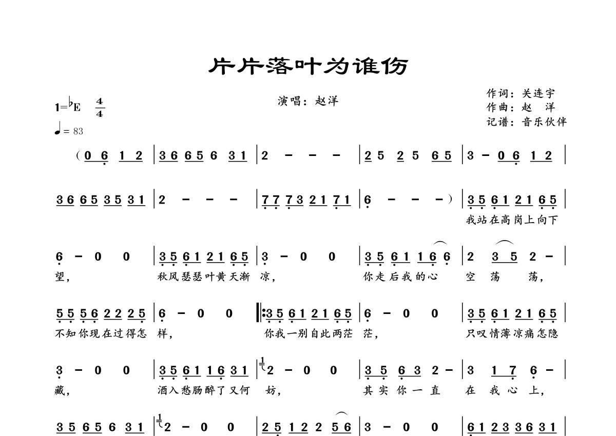 赵洋《片片落叶为谁伤》简谱