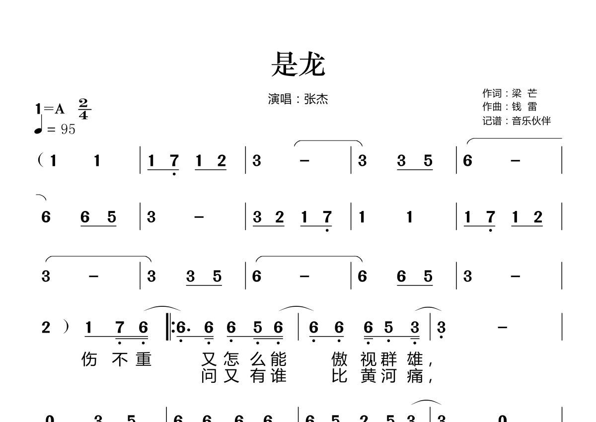是龙简谱 - 张杰演唱