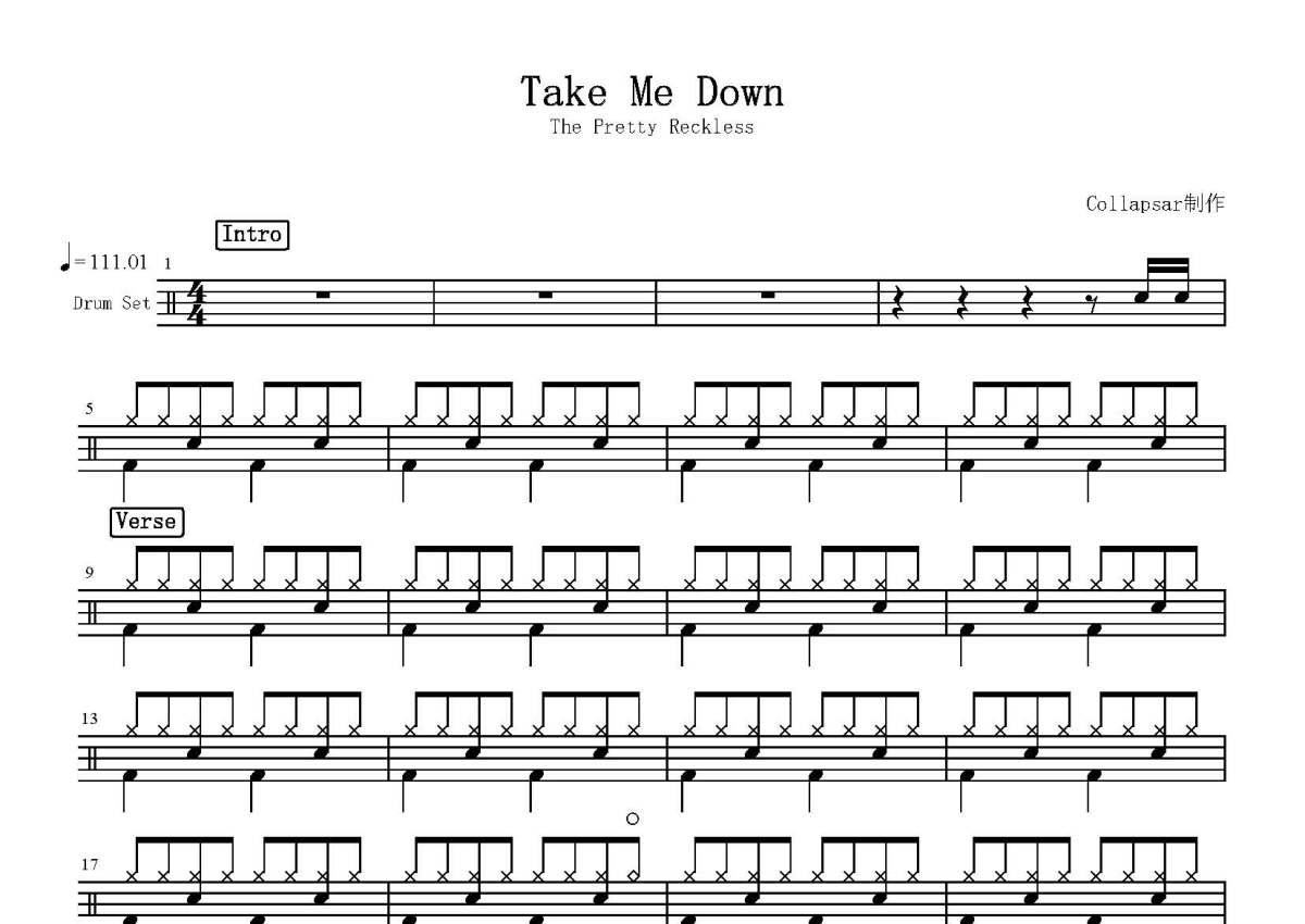 The Pretty Reckless《Take Me Down》鼓谱 - 架子鼓谱