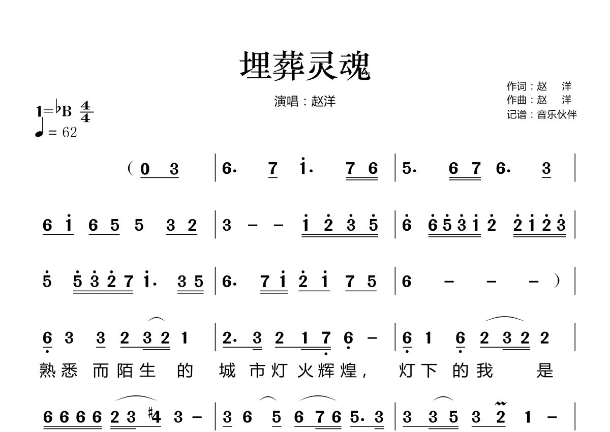 埋葬灵魂简谱 - 赵洋演唱