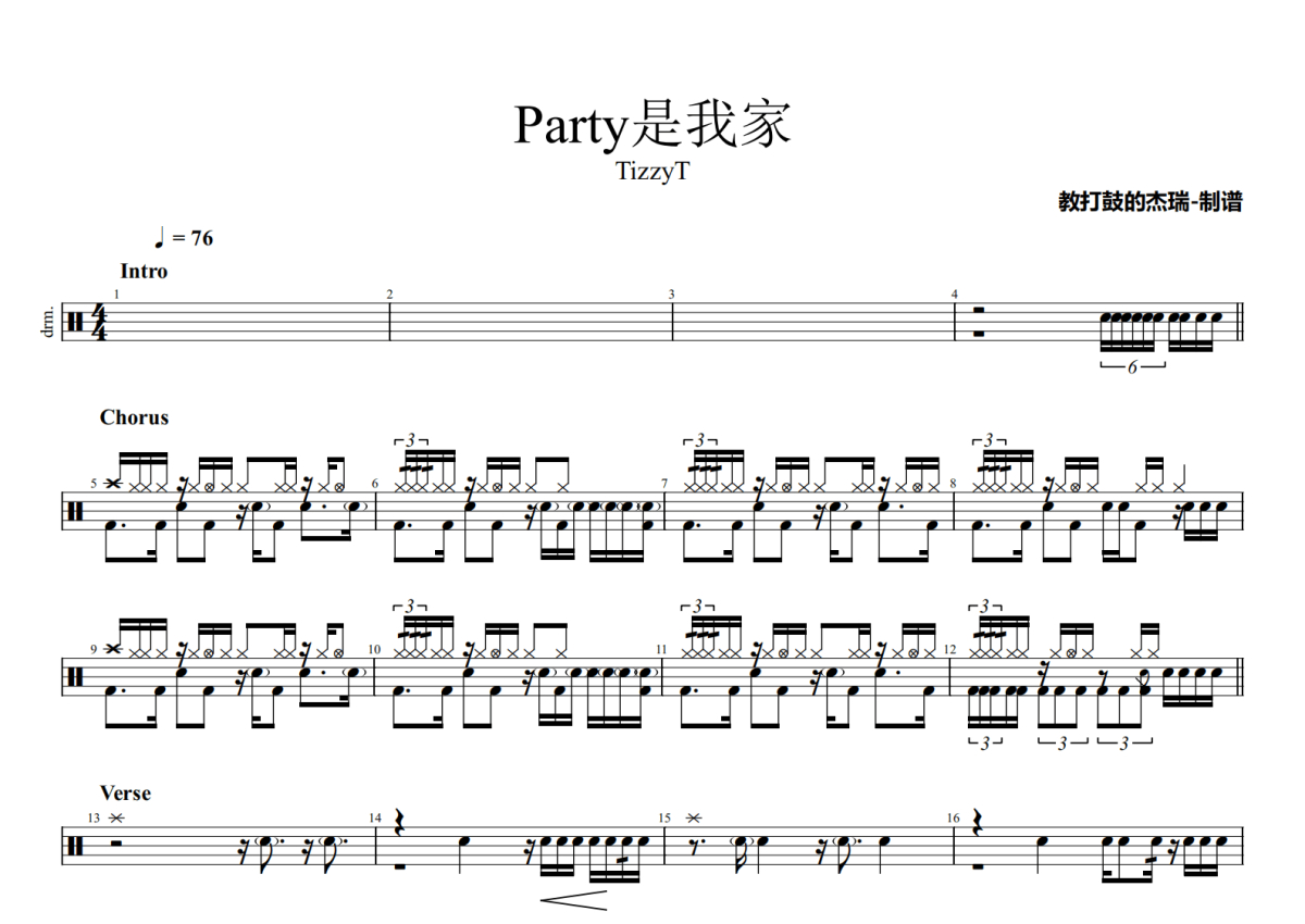 TizzyT《Party是我家》架子鼓谱