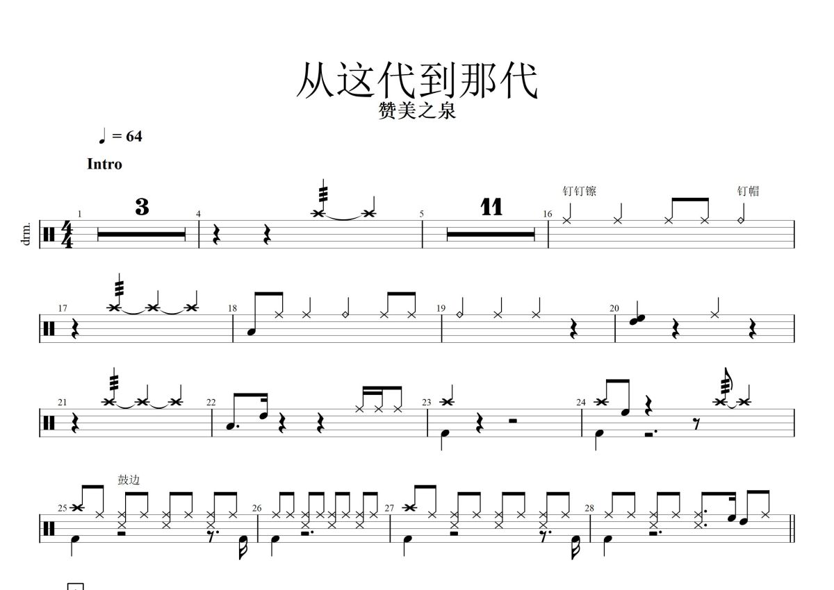 赞美之泉《从这代到那代》鼓谱 - 架子鼓谱