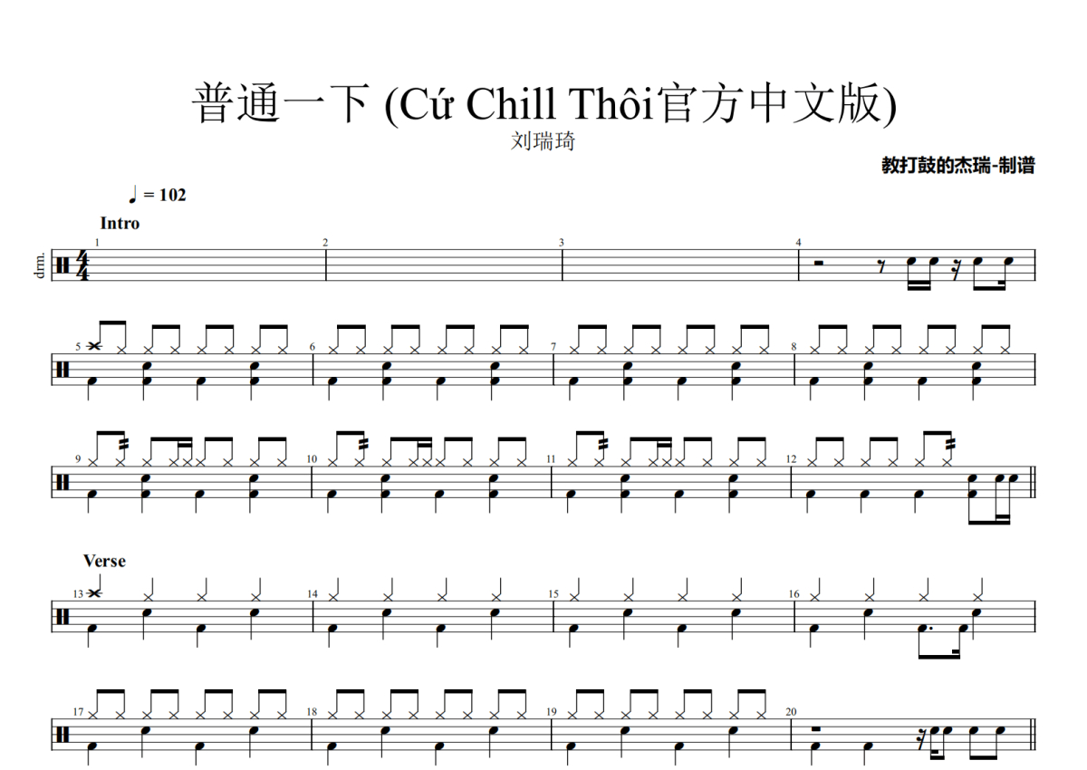 刘瑞琦《普通一下》架子鼓谱 - Cứ Chill Thôi官方中文版