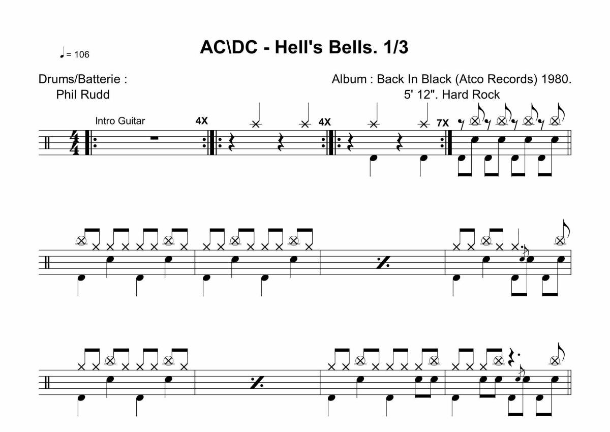 ACDC《Hells Bells》架子鼓谱