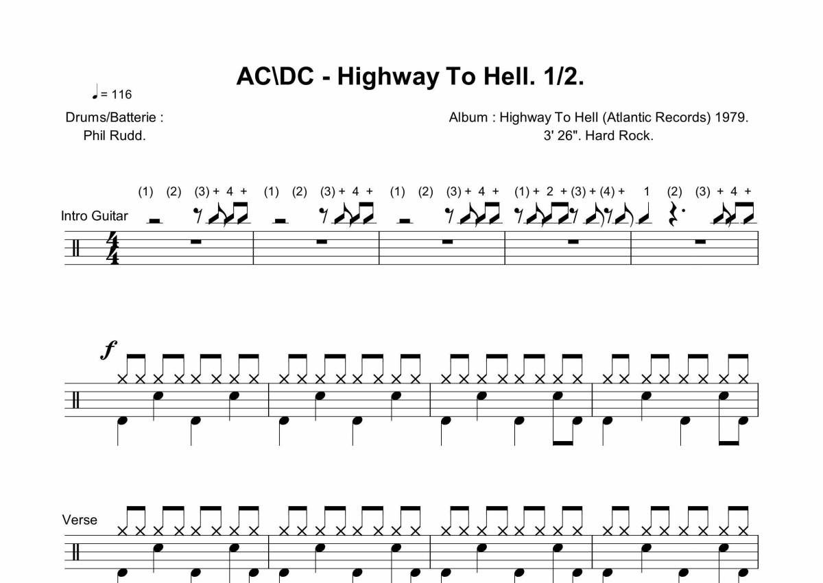 《Highway To Hell》是AC/DC演唱的一首歌曲,拍号为4/4拍,歌曲速度为每分钟116拍,这份架子鼓谱共有两张高清图谱,图谱由 @微信用户 编配上传,图谱使用五线谱编配,使用这份Highway To Hell架子鼓谱,你将能够轻松地敲打出这首AC/DC的Highway To Hell,快来尝试吧。