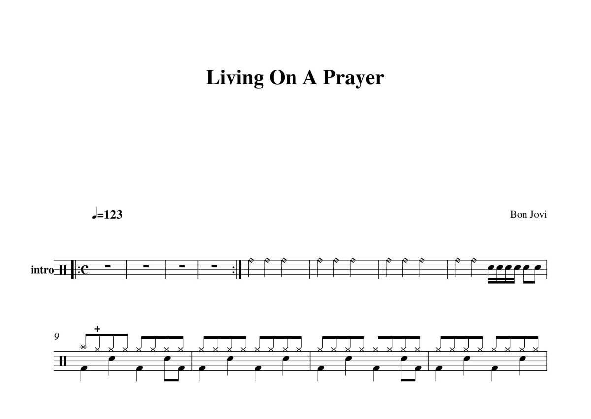 《living on a prayer》是Bon Jovi演唱的一首歌曲,拍号为4/4拍,歌曲速度为每分钟123拍,这份架子鼓谱共有四张高清图谱,图谱由 @微信用户 编配上传,图谱使用五线谱编配,使用这份living on a prayer架子鼓谱,你将能够轻松地敲打出这首Bon Jovi的living on a prayer,快来尝试吧。