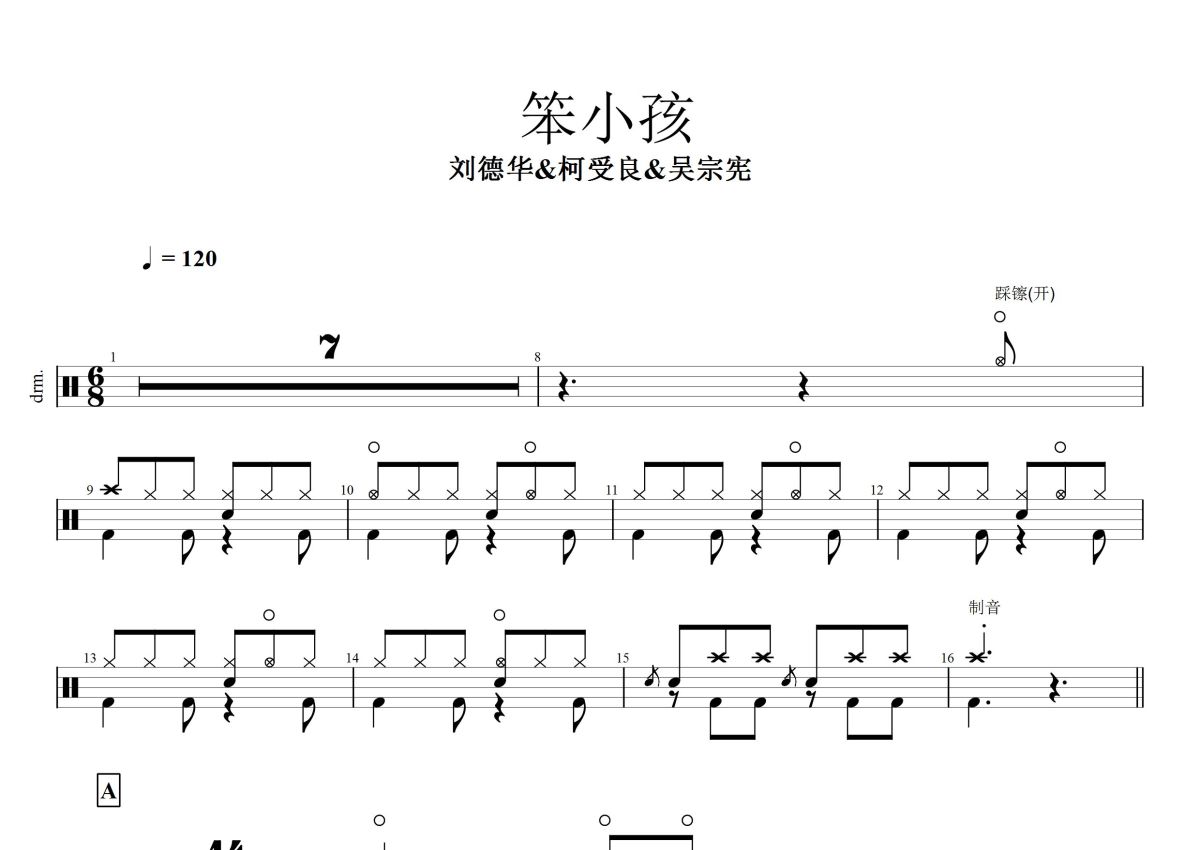 刘德华/柯受良/吴宗宪《笨小孩》鼓谱 - 架子鼓谱