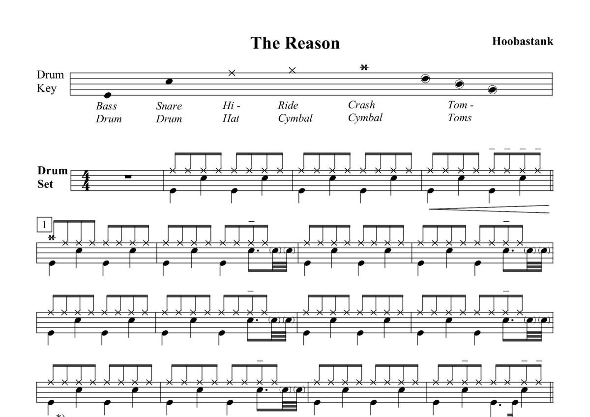 《The reason》是Hoobastank演唱的一首歌曲,拍号为4/4拍,这份架子鼓谱共有两张高清图谱,图谱由 @微信用户 编配上传,图谱使用五线谱编配,使用这份The reason架子鼓谱,你将能够轻松地敲打出这首Hoobastank的The reason,快来尝试吧。