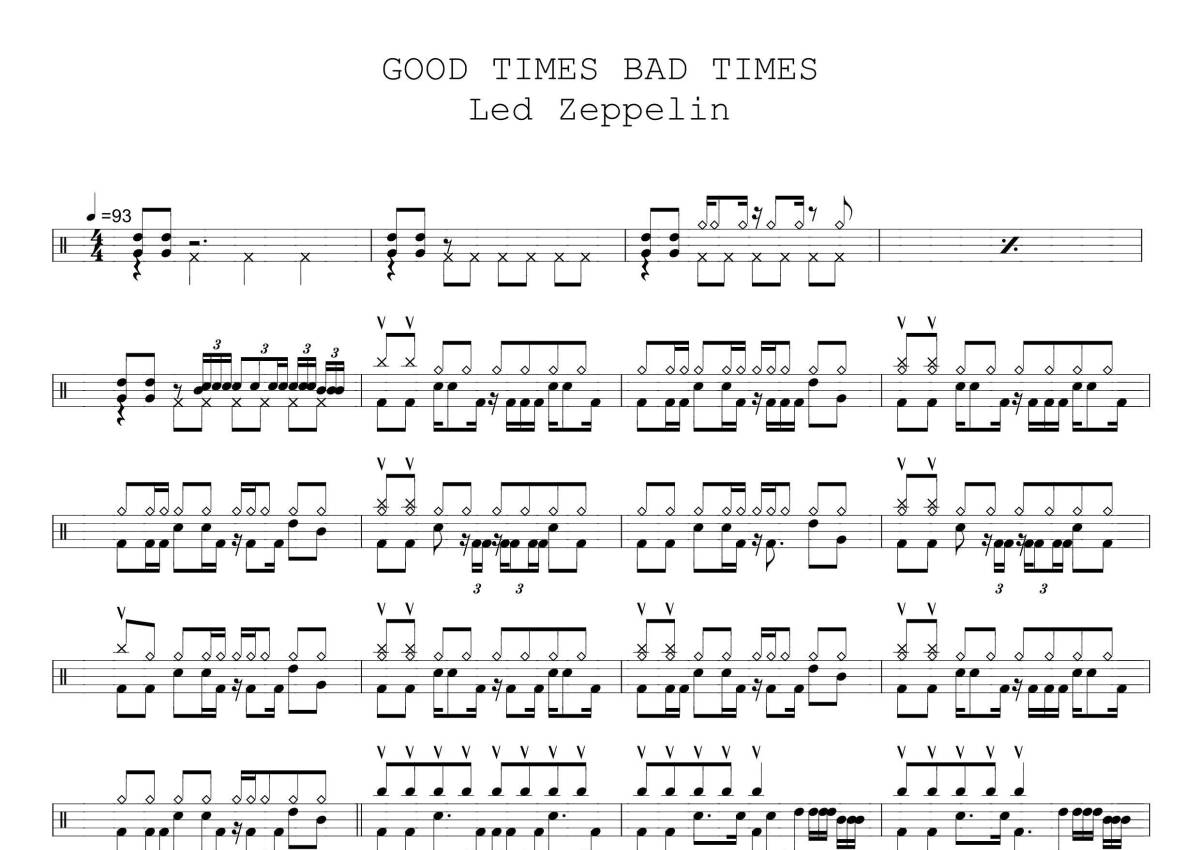 Led Zeppelin《Good times bad times》架子鼓谱