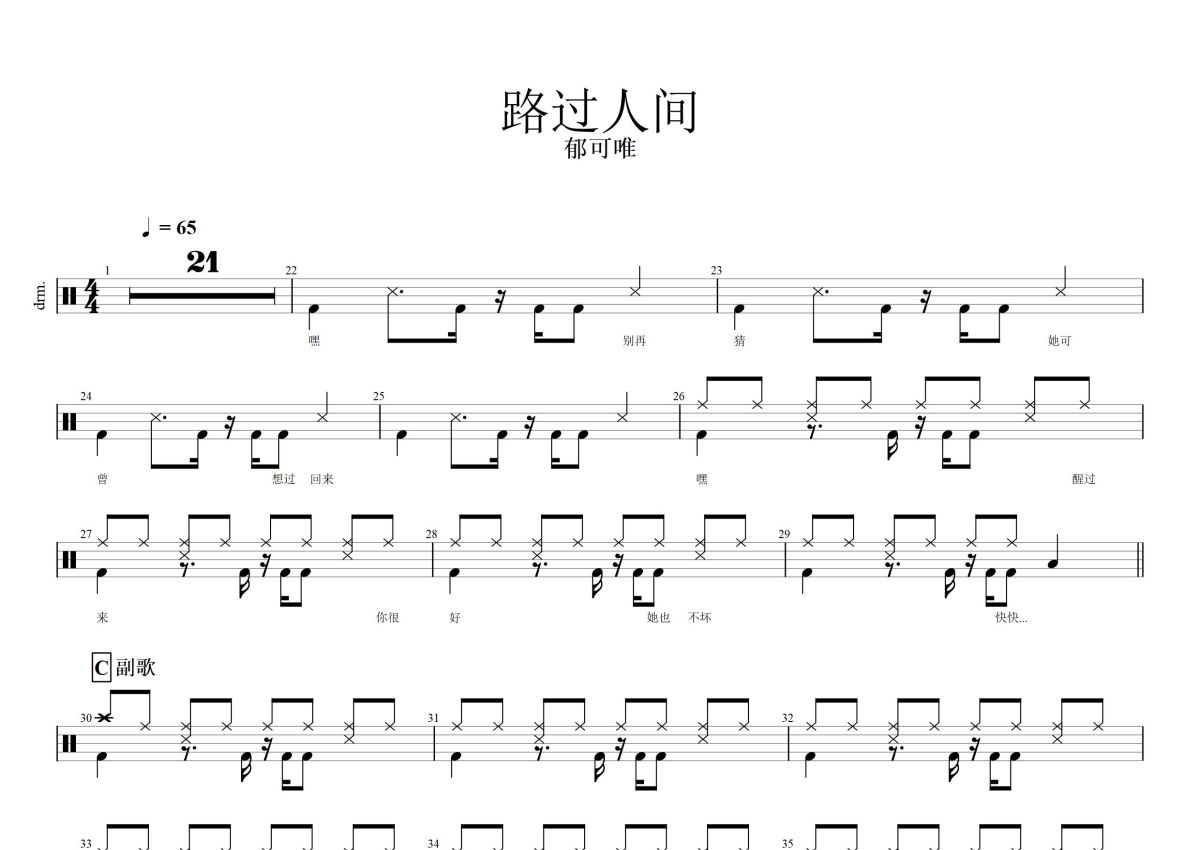 郁可唯《路过人间》鼓谱 - 架子鼓谱