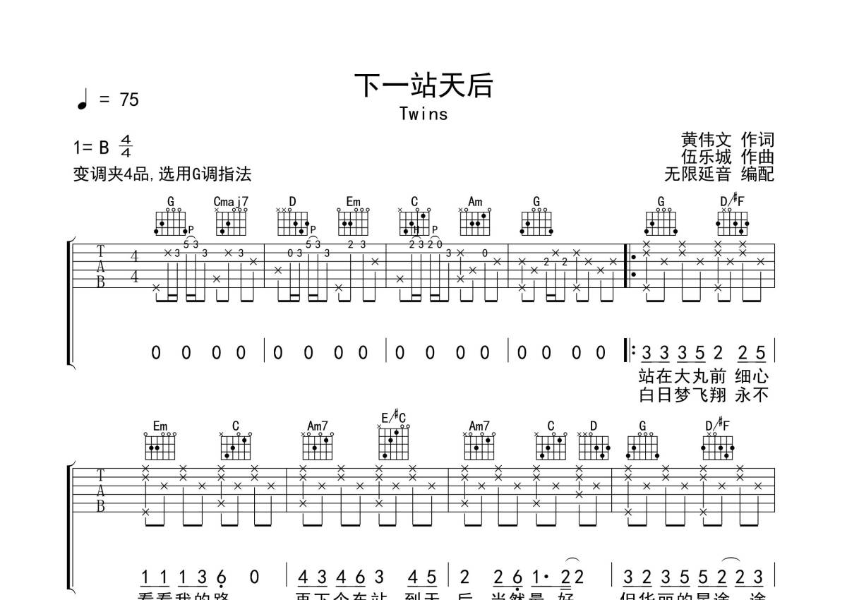 Twins《下一站天后》吉他谱 - G调弹唱六线谱