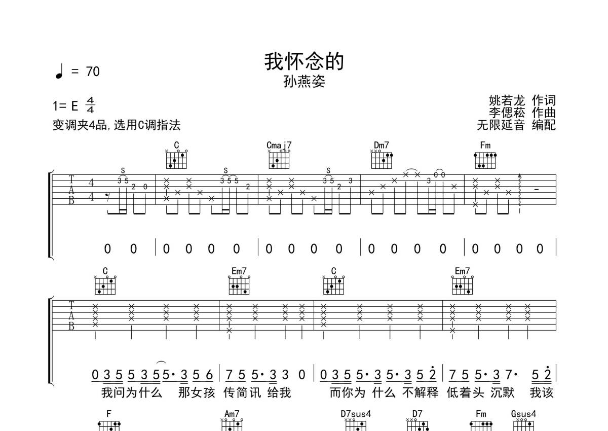 我怀念的吉他谱 - 孙燕姿 - C调弹唱六线谱
