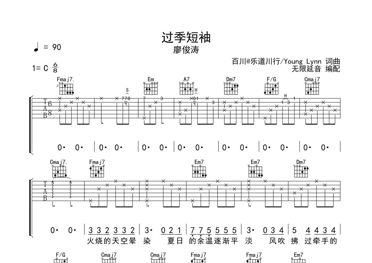 过季短袖吉他谱 - 廖俊涛 - 无限延音编配
