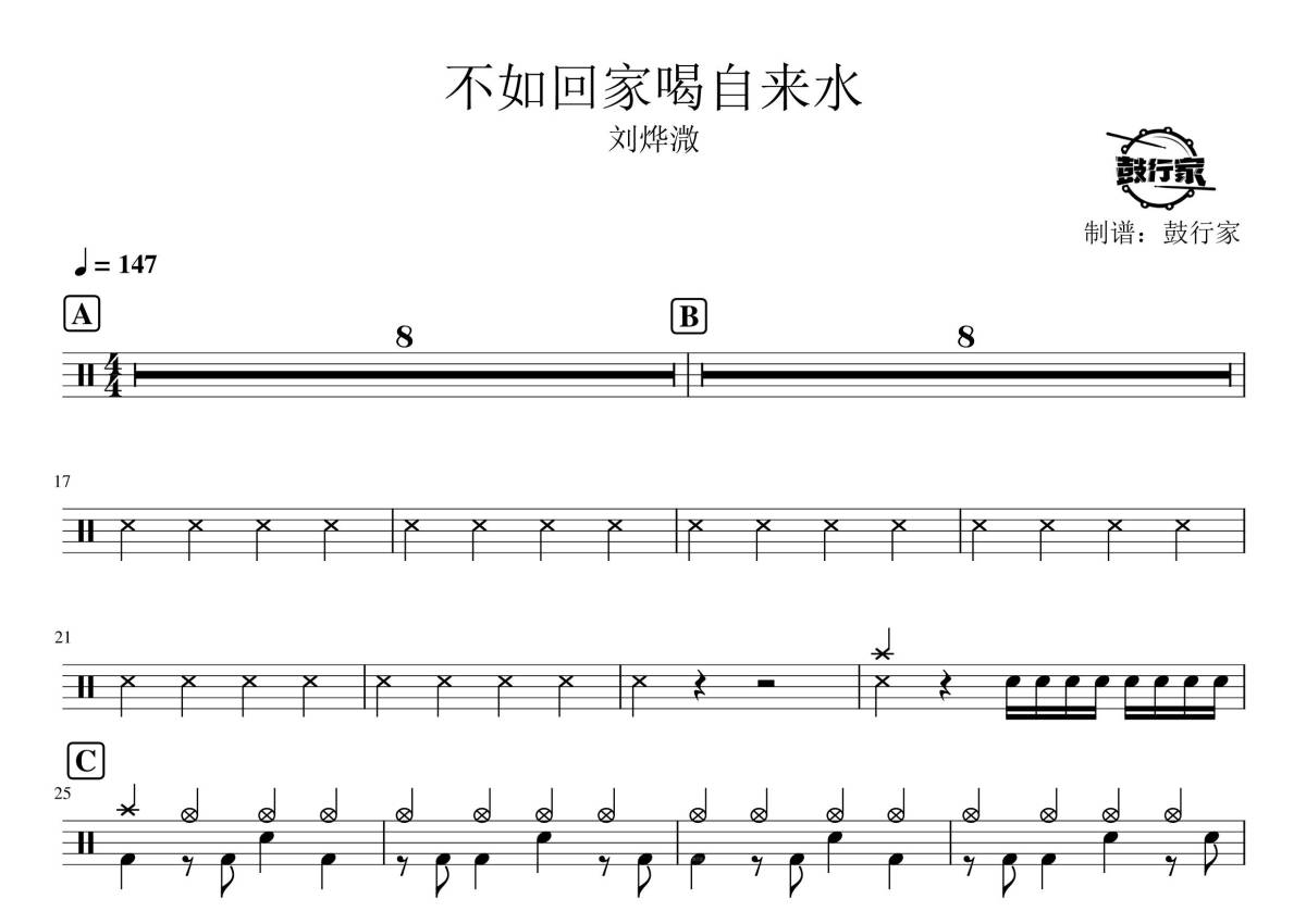 《不如回家喝自来水》架子鼓谱 - 刘烨溦