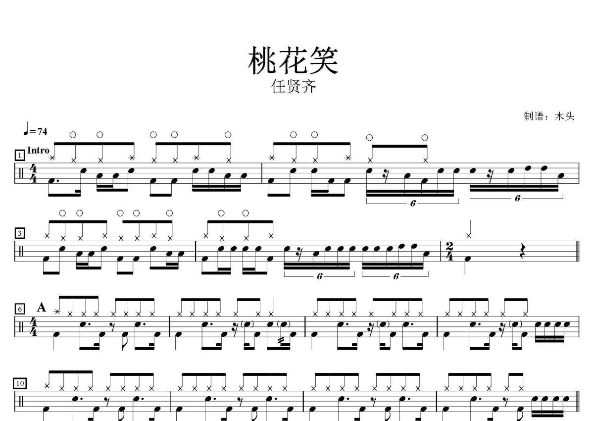 任贤齐《桃花笑》鼓谱 - 架子鼓谱