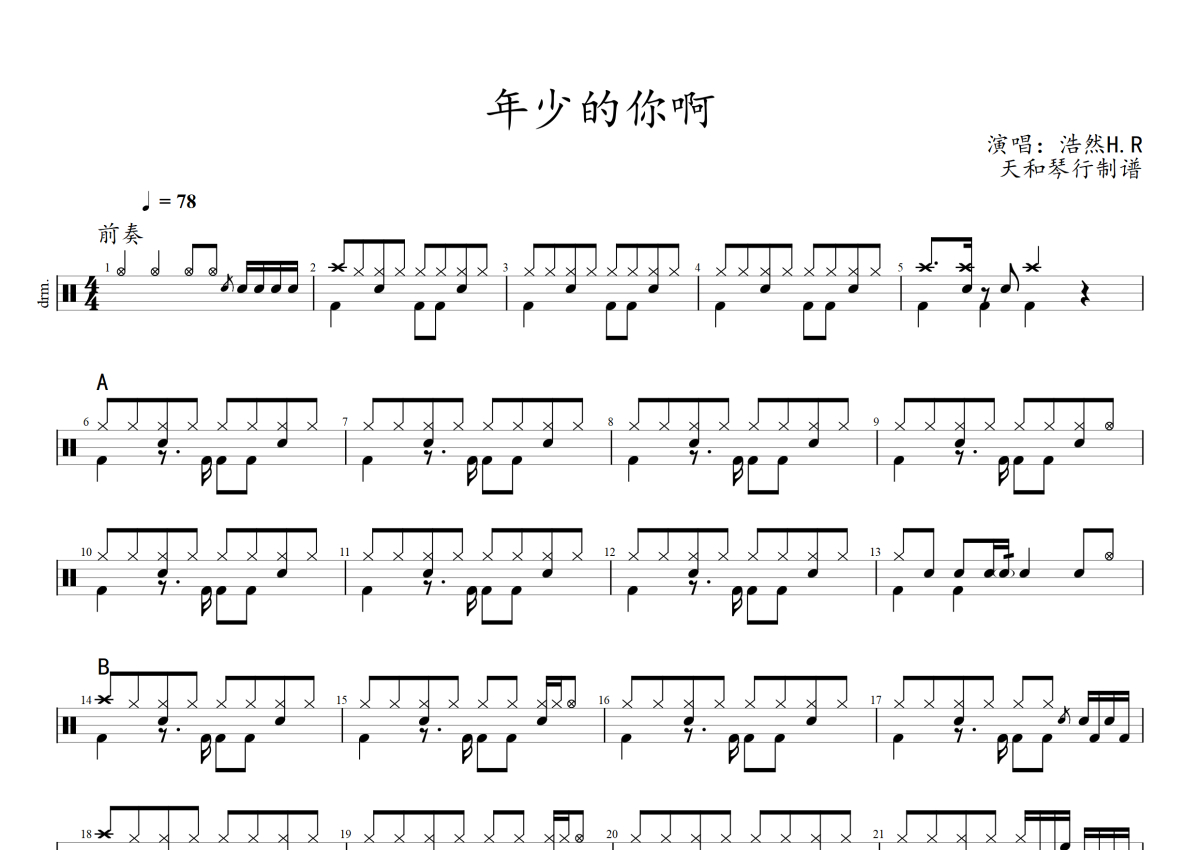 浩然H.R《年少的你啊》架子鼓谱