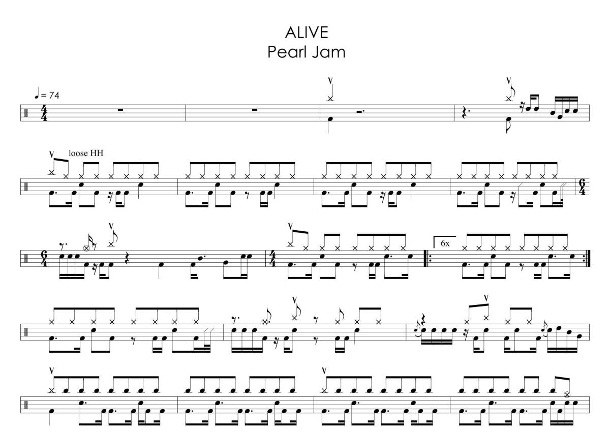 Pearl Jam《Alive》架子鼓谱