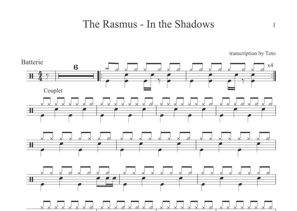 The Rasmus《In The Shadows》架子鼓谱