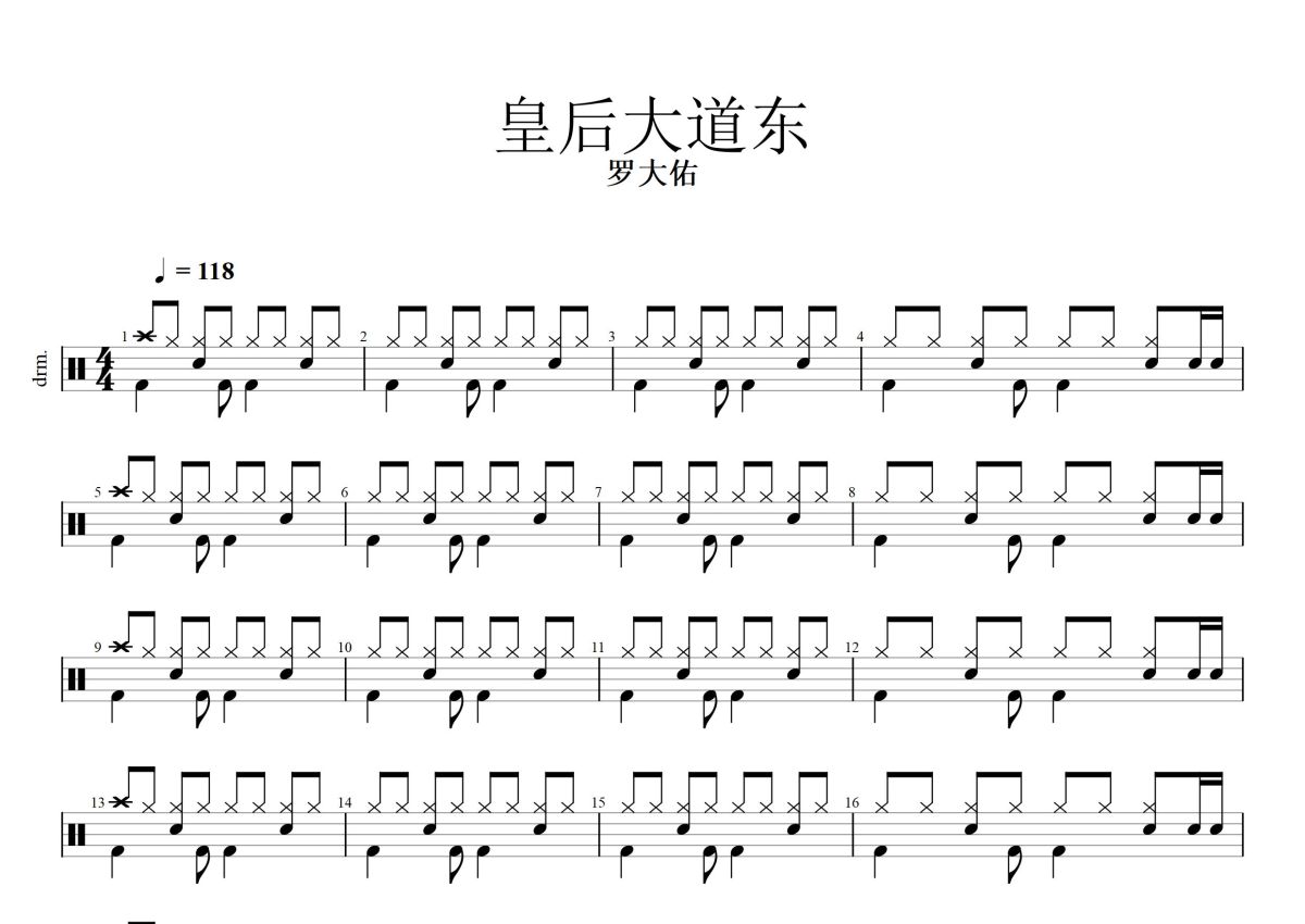 《皇后大道东》是罗大佑演唱的一首歌曲,这份鼓谱共有三张高清图谱,图谱由 @打鼓谱 编配上传,图谱使用五线谱编配,使用这份皇后大道东架子鼓谱,你将能够轻松地敲打出这首罗大佑的皇后大道东,快来尝试吧。《皇后大道东》是“音乐工厂”正式注册后制作的第一张专辑,由滚石国际音乐有限公司在1991年7月1日发行,这张专辑,集结了罗大佑、梅艳芳、黄沾等人演唱的歌曲。