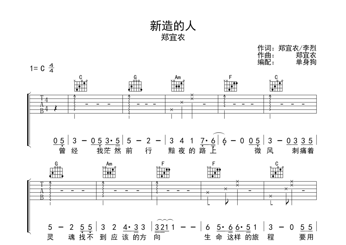 新造的人吉他谱 - 郑宜农 - 单身狗编配
