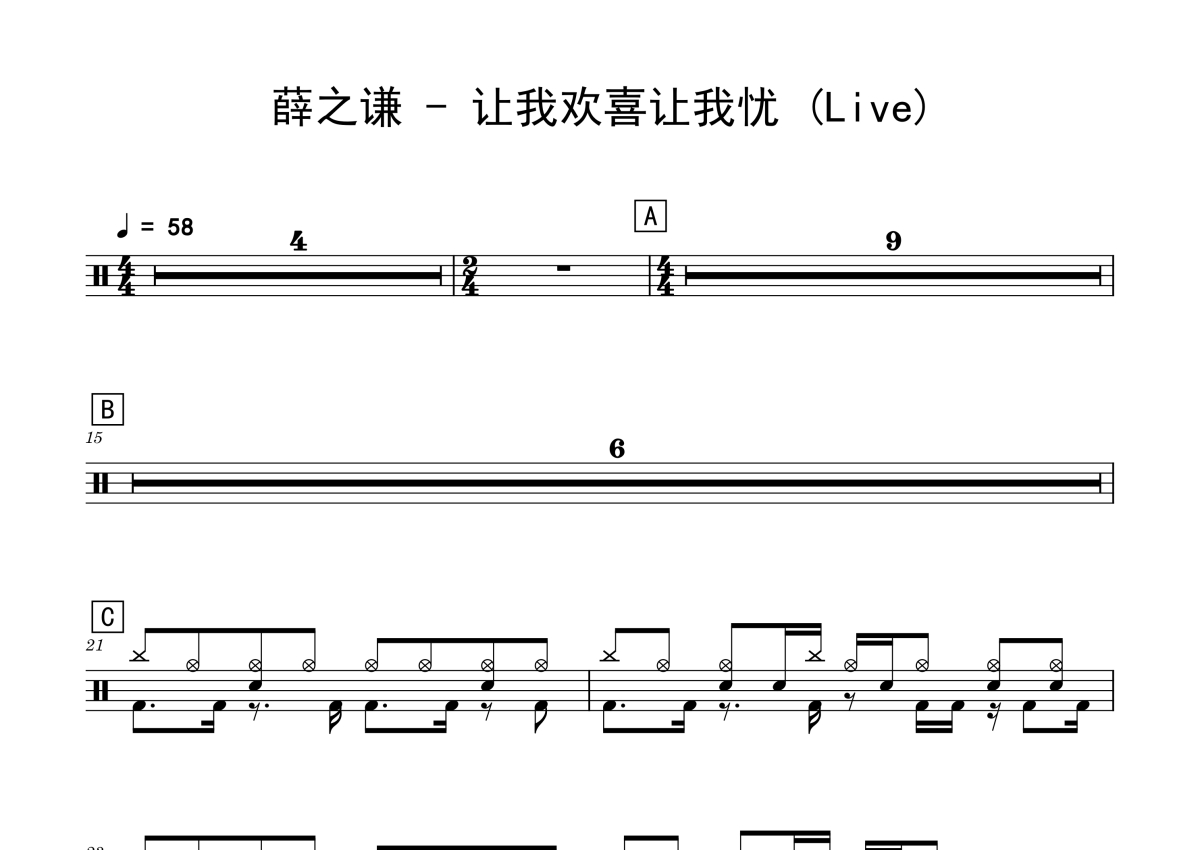 薛之谦《让我欢喜让我忧》架子鼓谱 - (Live)