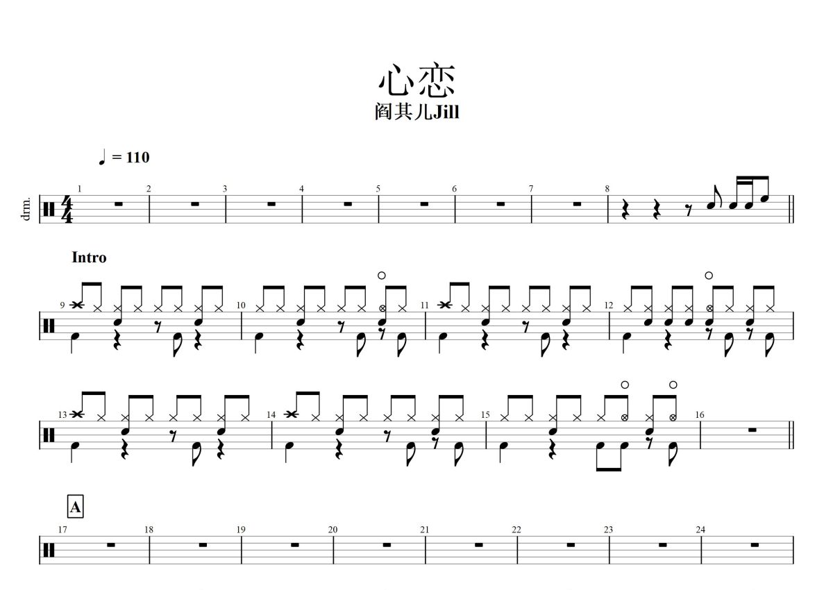 阎其儿Jill《心恋》鼓谱 - 架子鼓谱