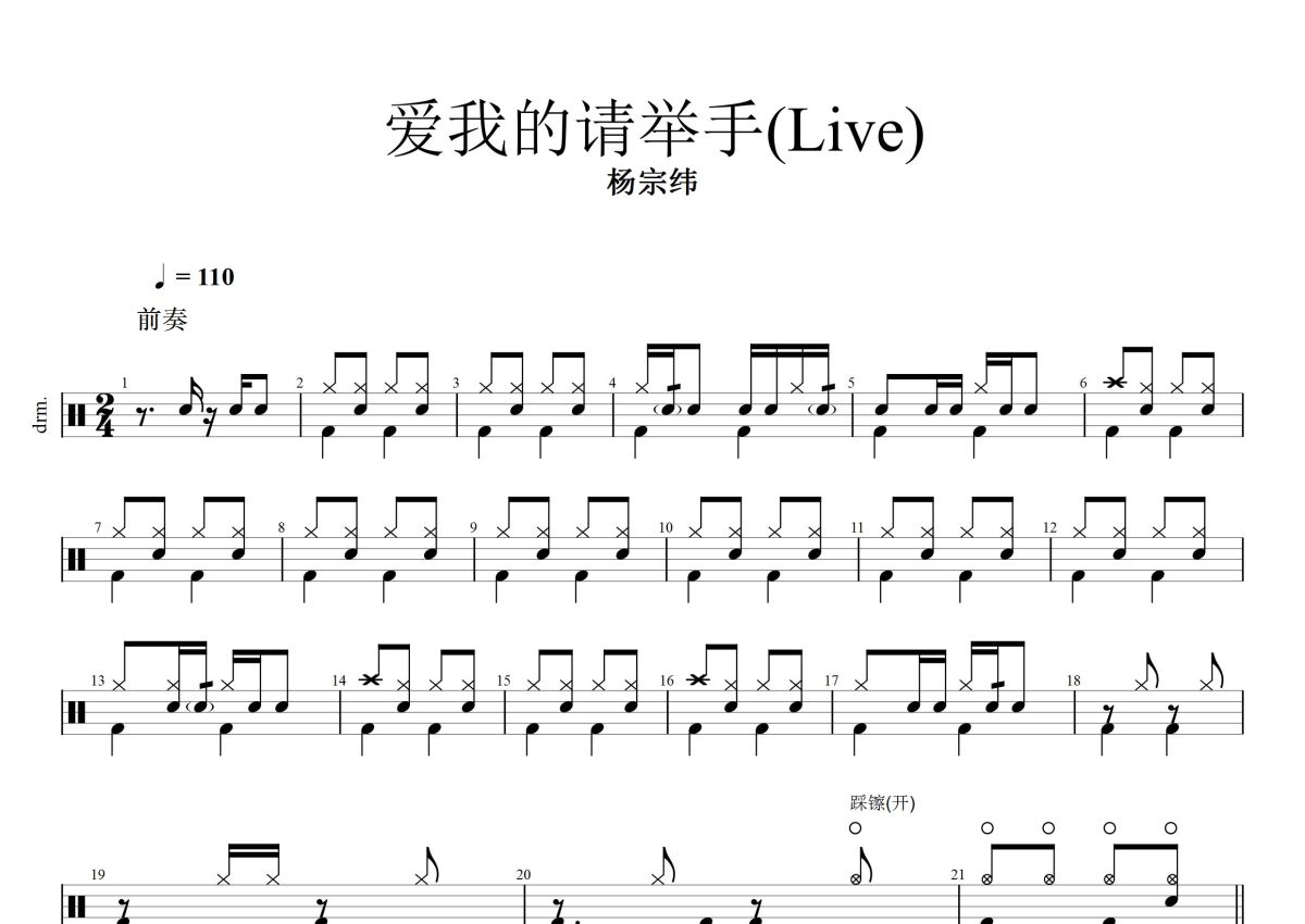 杨宗纬《爱我的请举手》鼓谱 - 架子鼓谱
