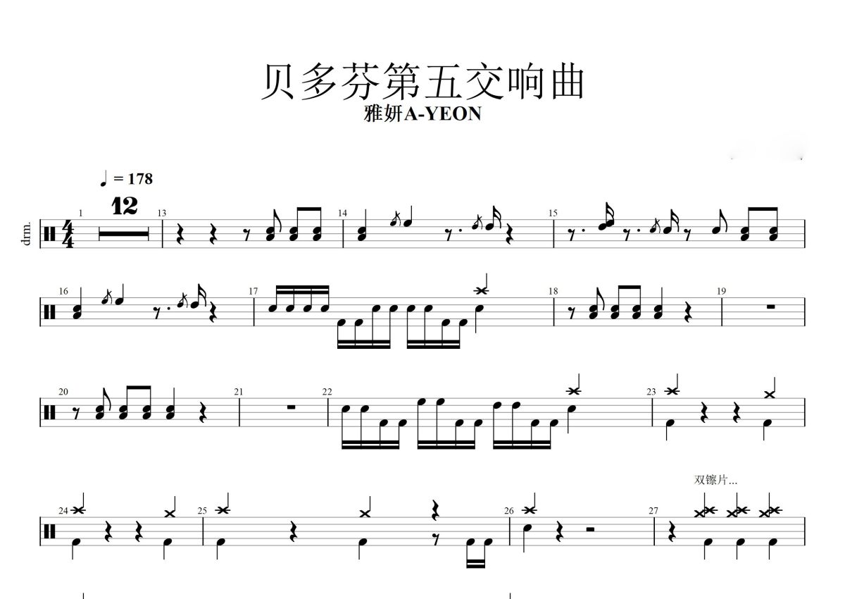 雅妍A-YEON《贝多芬第五交响曲》鼓谱 - 架子鼓谱