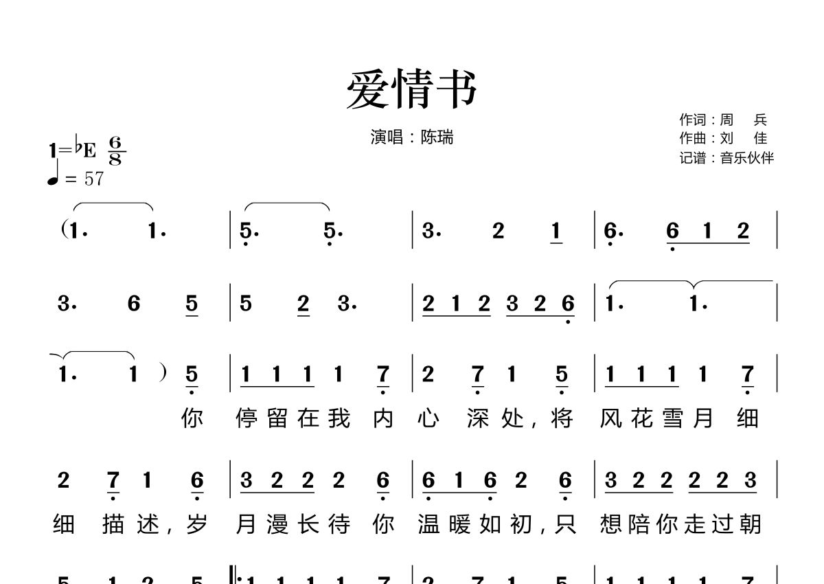 爱情书简谱 - 陈瑞演唱
