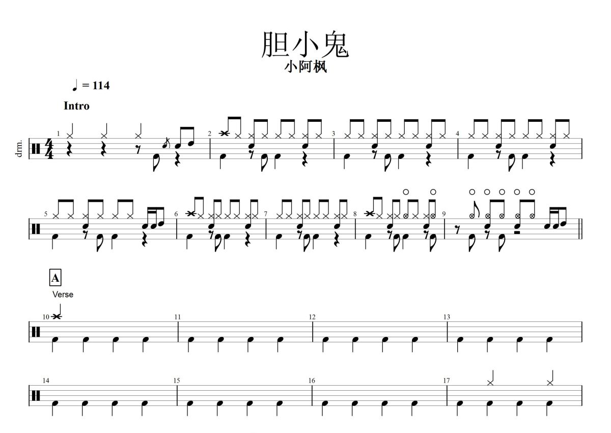 小阿枫《胆小鬼》鼓谱 - 架子鼓谱