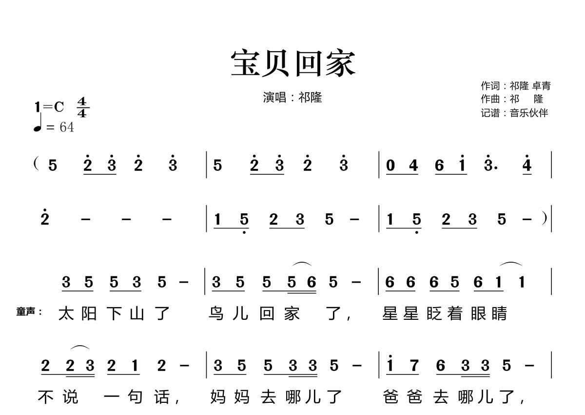 《宝贝回家》是祁隆演唱的一首歌曲,这份简谱共有三张高清图谱,图谱由 @音乐伙伴 编配上传。