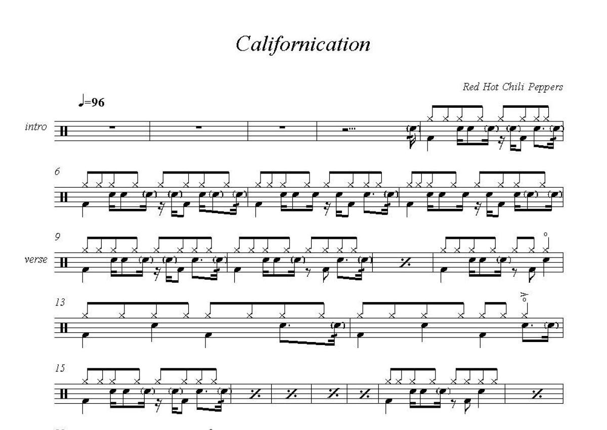 Red Hot Chili Peppers《Californication》架子鼓谱