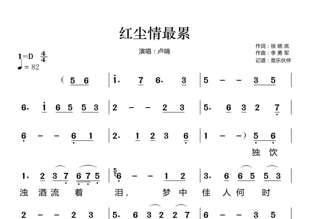 红尘情最累简谱 - 卢喃演唱