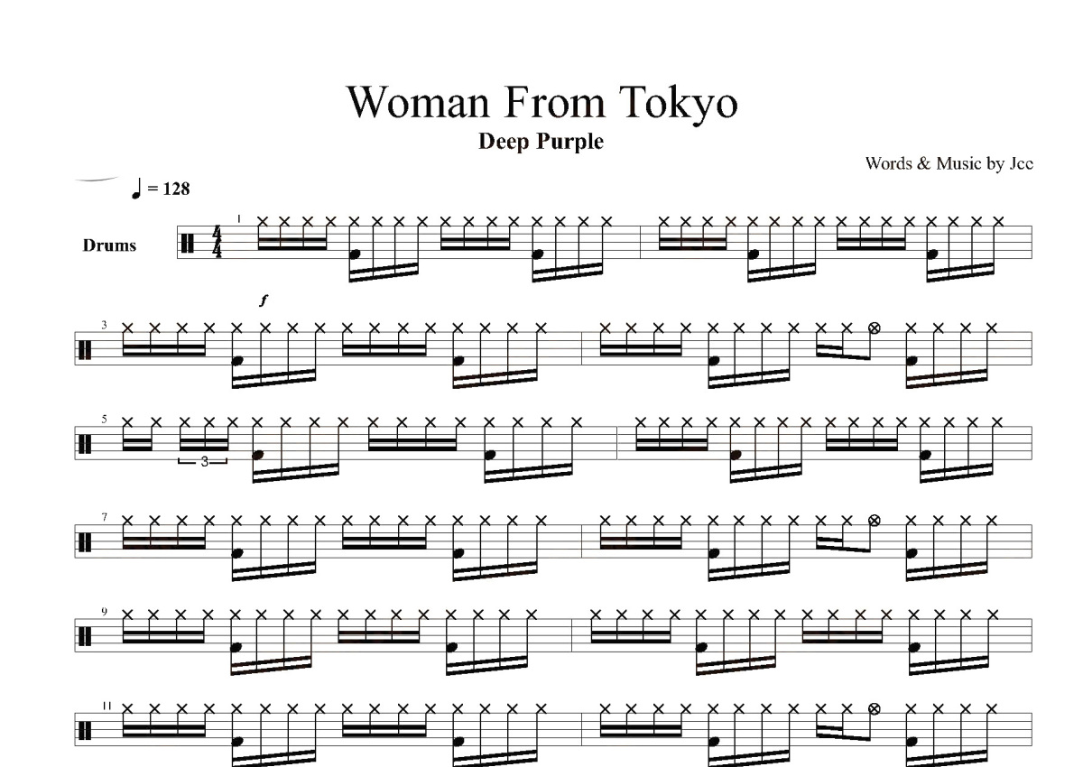 Deep Purple《Woman From Tokyo》鼓谱 - 架子鼓谱