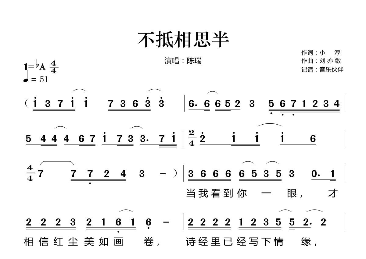 《不抵相思半》简谱 - 陈瑞