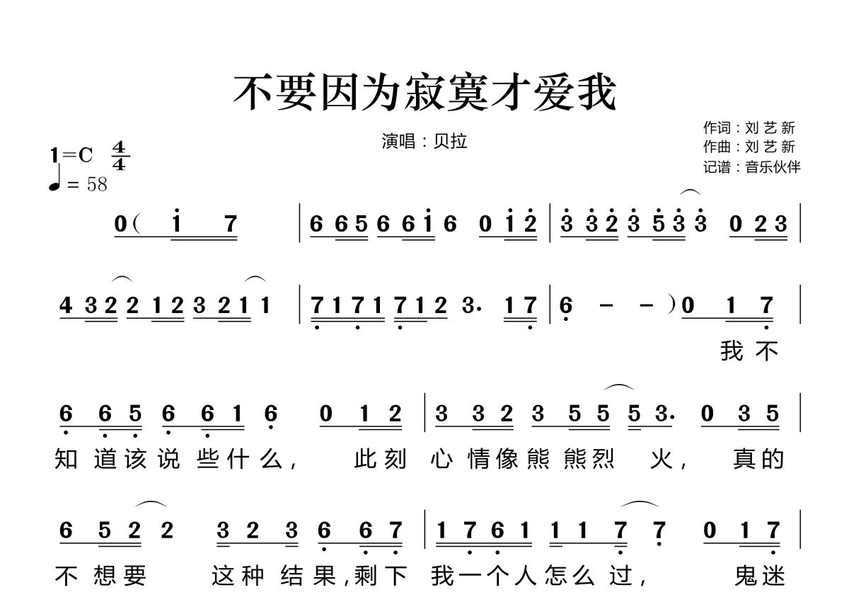 《不要因为寂寞才爱我》是贝拉演唱的一首歌曲,这份简谱共有两张高清图谱,图谱由 @音乐伙伴 编配上传。