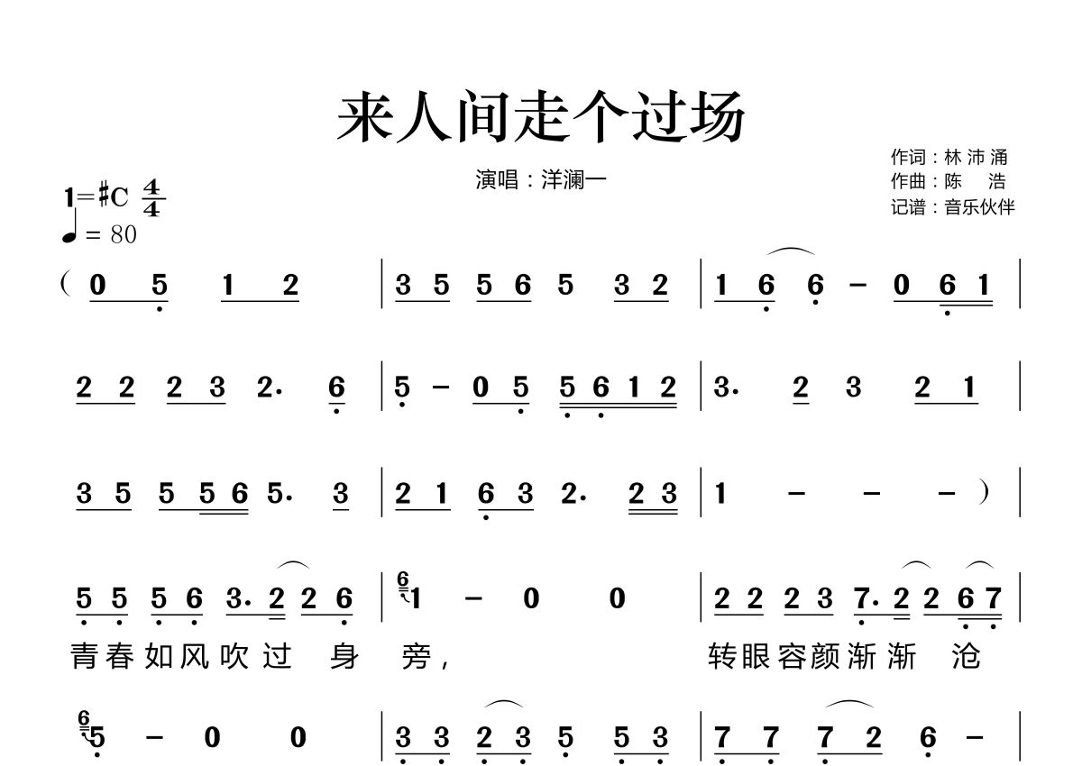 《来人间走个过场》是洋澜一演唱的一首歌曲,这份简谱共有两张高清图谱,图谱由 @音乐伙伴 编配上传。