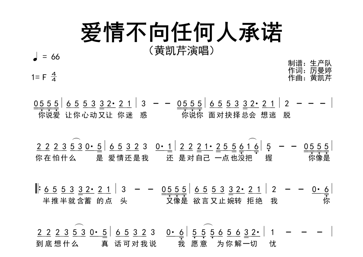 黄凯芹《爱情不向任何人承诺》简谱 - 简谱