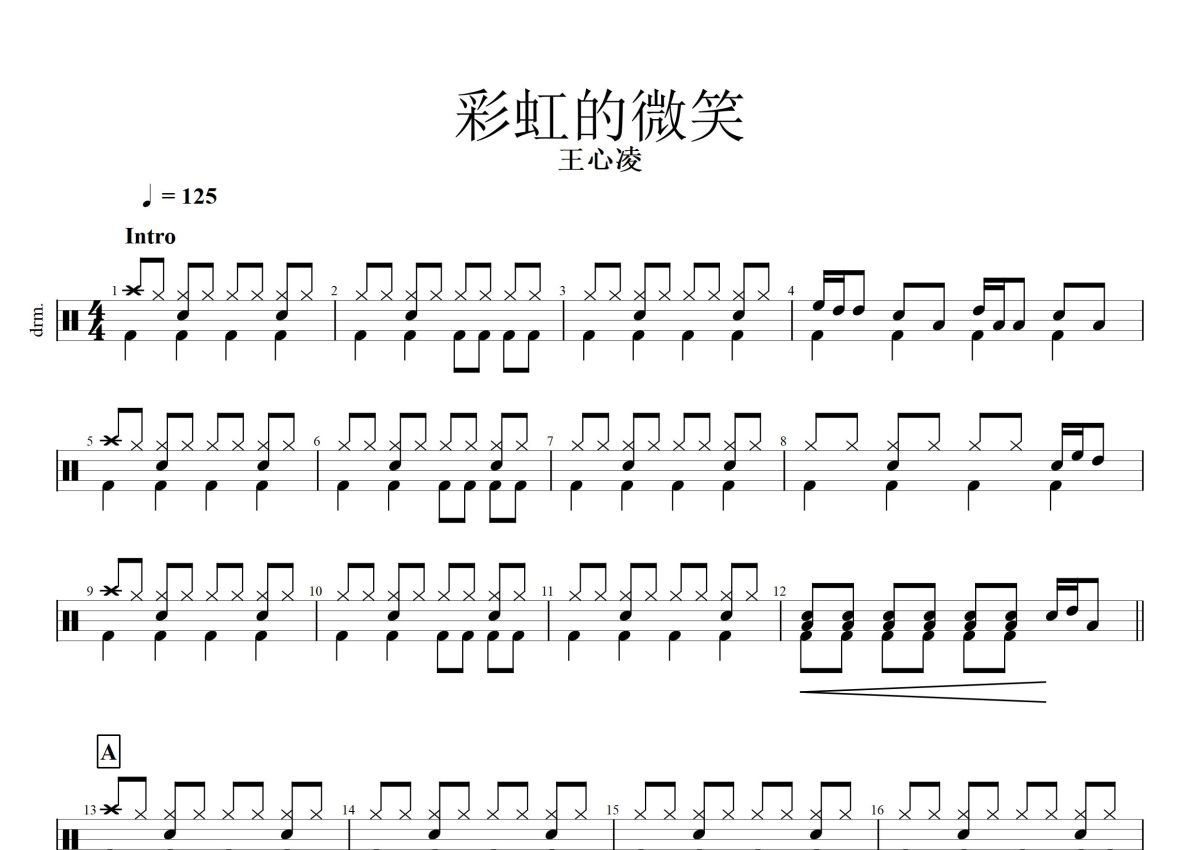 王心凌《彩虹的微笑》鼓谱 - 架子鼓谱