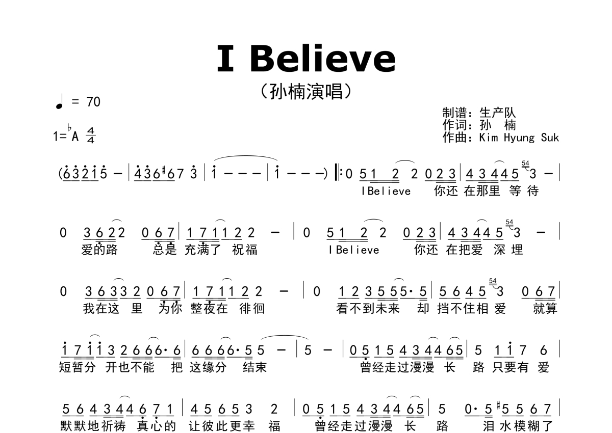 孙楠《I Believe》简谱 - 原版简谱