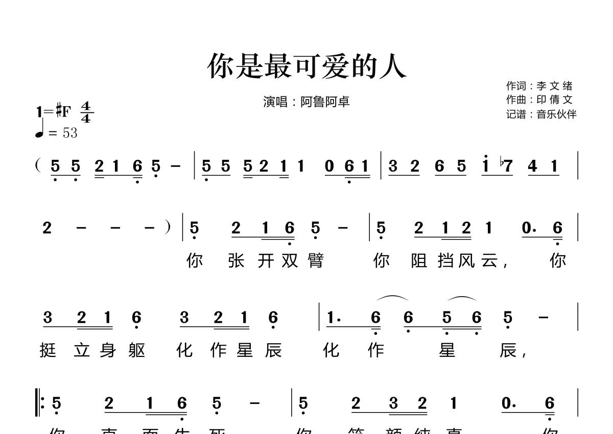 你是最可爱的人简谱 - 阿鲁阿卓演唱
