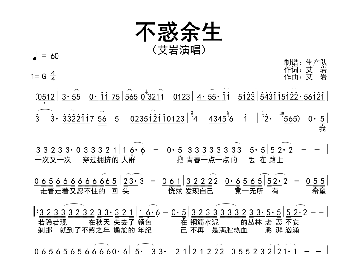 艾岩《不惑余生》简谱