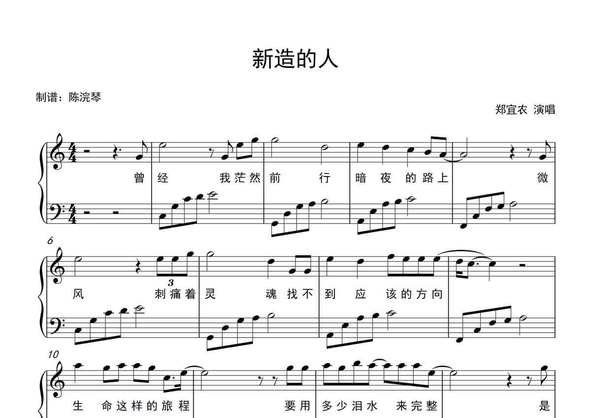 郑宜农《新造的人》钢琴谱 - 简单版