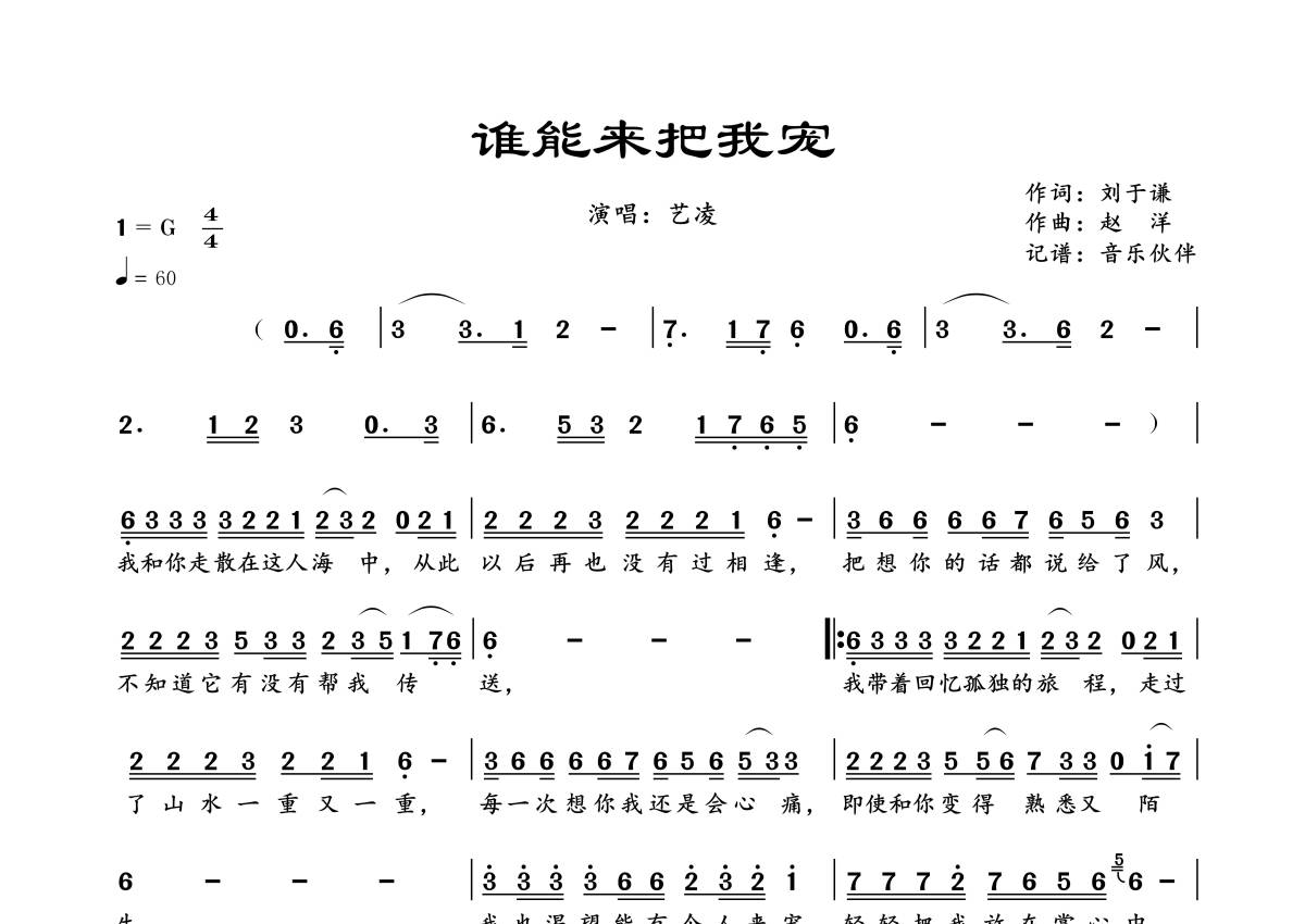 《谁能来把我宠》是艺凌演唱的一首歌曲,拍号为4/4拍,歌曲速度为每分钟60拍,这份简谱共有一张高清图谱,图谱由 @音乐伙伴 编配上传。