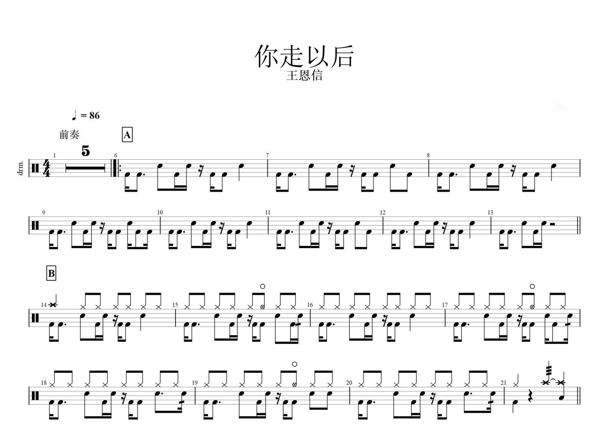 王恩信《你走以后》鼓谱 - 架子鼓谱