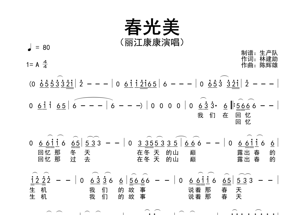 丽江康康《春光美》简谱