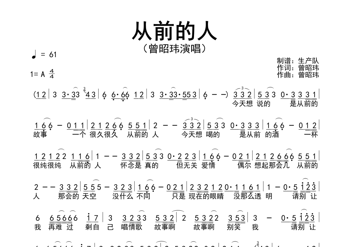 曾昭玮《从前的人》简谱 - 简谱
